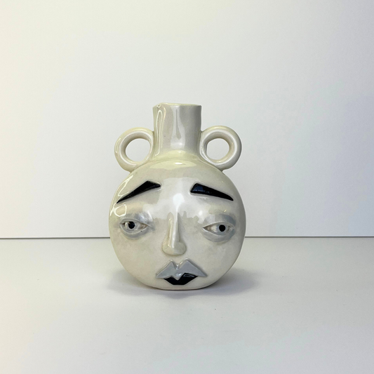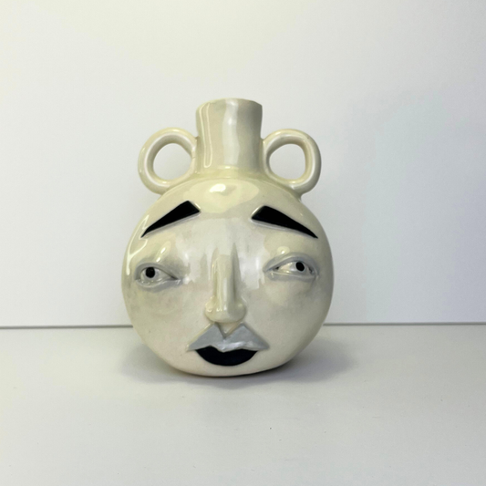 Medium Moon Face Vase – Handmade Ceramic with Handles
