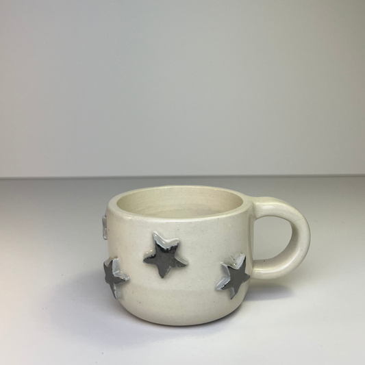 Handmade CeramicMoon Face Espresso Mug with White Gold Stars