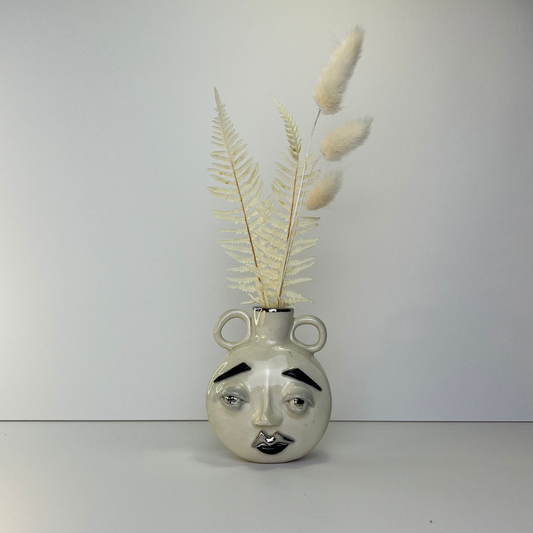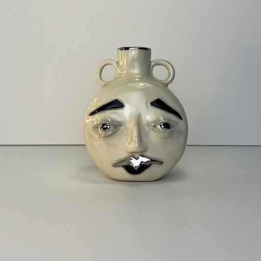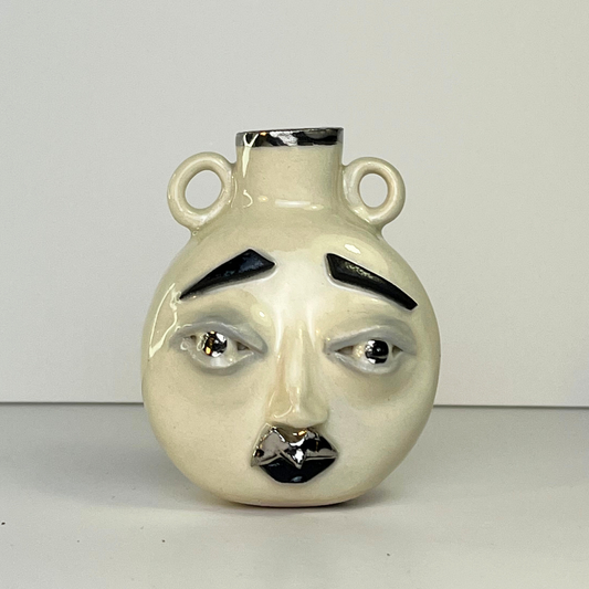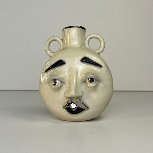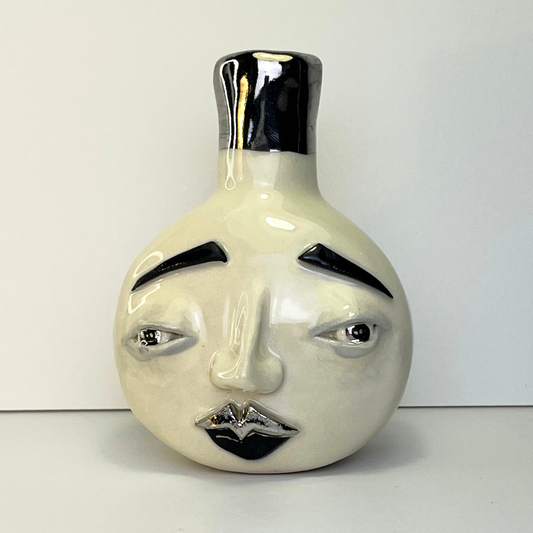 Small Moon Face Vase – White Gold Overglaze, Handmade Ceramic 1/3